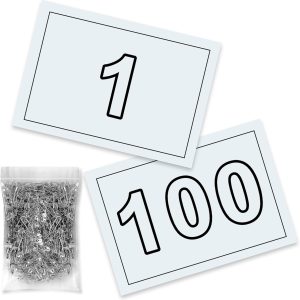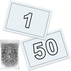 Cada dorsal se acompaña de imperdibles metálicos, facilitando una fijación segura y rápida a todo tipo de prendas deportivas sin necesidad de accesorios adicionales. La numeración impresa en gran formato permite una lectura clara tanto por parte de los jueces como de los participantes.